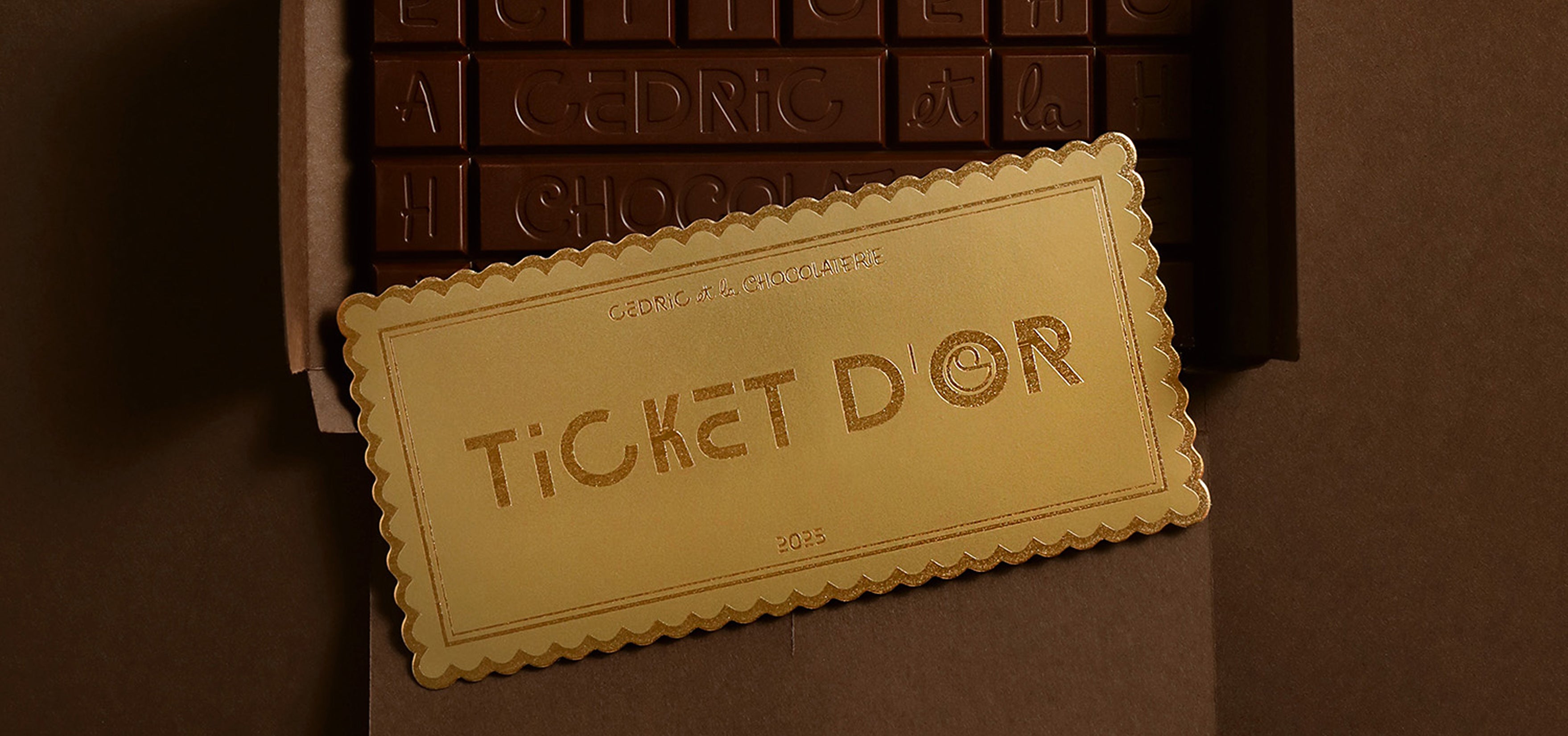 To celebrate the opening of our new Cedric and the Chocolate Factory boutique, we have randomly slipped 10 numbered golden tickets into 10 of our bars sold in-store or on our website from October 18 to November 14, 2025.